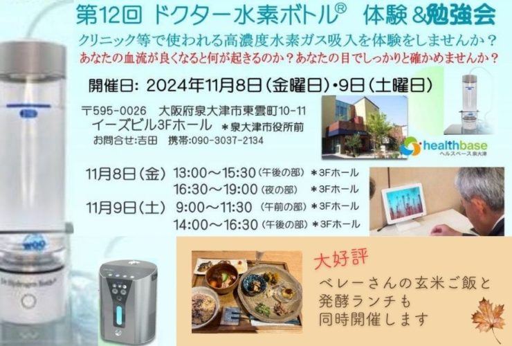 9時~ ❘ 第12回 ドクター水素ボトル®体験&勉強会 ベレーさんのランチも...
