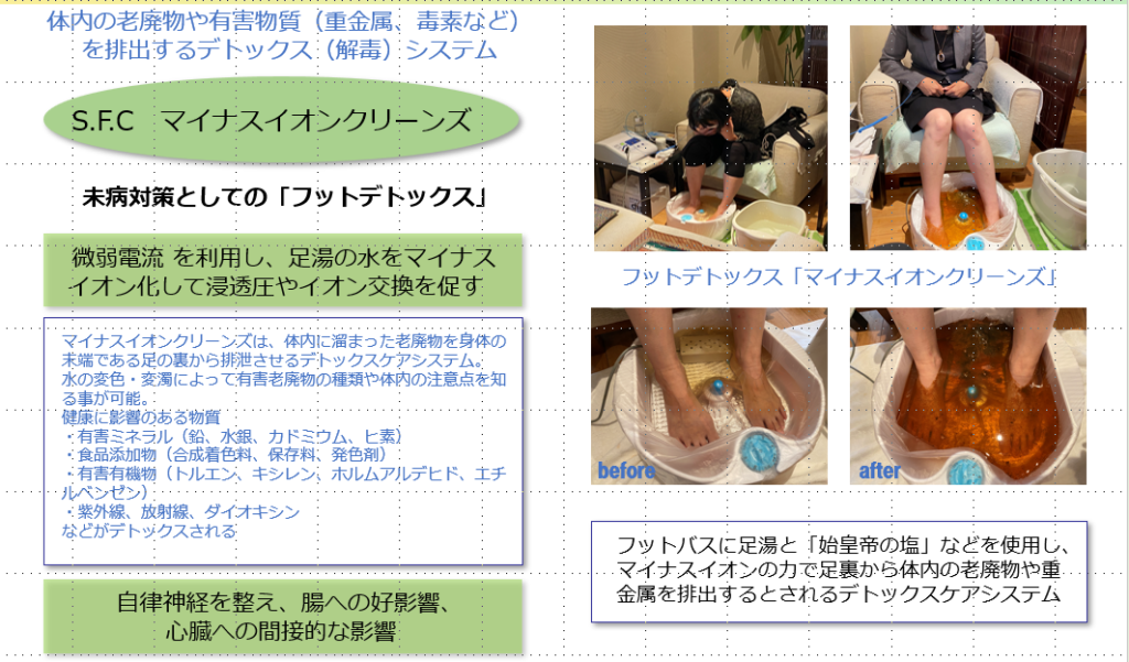 未病対策としてのフットデトックス S.F.Cマイナスイオンクリーンズ